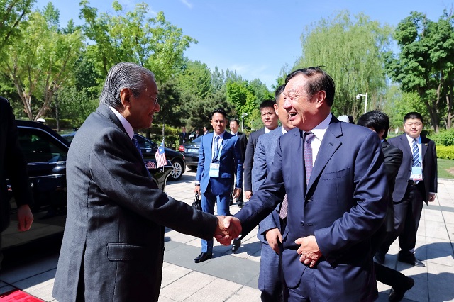 华为公司创始人任正非迎接马来西亚首相敦马哈蒂尔