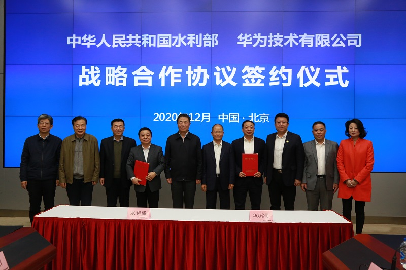 [中国,北京,2020年12月11日] 12月10日,水利部与华为签署战略合作协议,双方就加强云、5G、AI、联接、计算等数字技术在水利行业更大范围、更多领域的应用达成多项共识,共同推进水利行业高质量发展。水利部部长鄂竟平、副部长叶建春、办公厅主任耿六成、规计司司长石春先、信息中心主任蔡阳,华为轮值董事长徐直军,华为高级副总裁、中国地区部总裁鲁勇,华为副总裁、数字政府总裁杨瑞凯,华为数字政府副总裁、水利水务业务部部长刘胜军等出席。