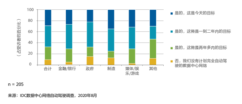 90%以上企业以构建数据中心自动驾驶网络为目标,遍布所有行业